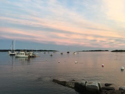 Live view of the harbor from the Island Lobster Company. Located on the shore of Casco Bay in Falmouth Foreside Maine. Dining room menus reservations.